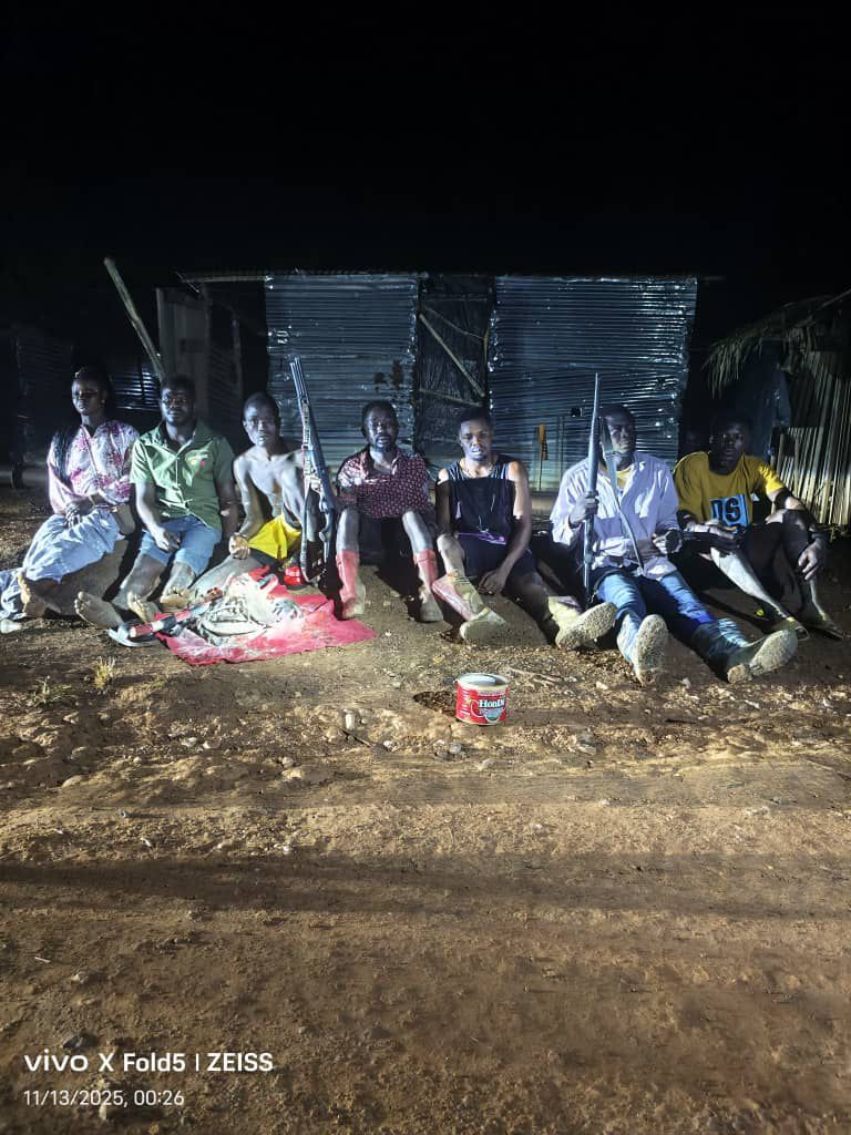 NAIMOS TaskForce conducts Deliberate Night Raid/Attack on a Notorious Galamsey Site at Armouri in Aowin Municipality of the Western North Region. TaskForce apprehends 7 illegal miners, and set ablaze several Makeshift Structured, including a Shrine controlled by one of the illegal miners. Items seized during the operation include 2 Pump Action Guns and 33 Cartridges.